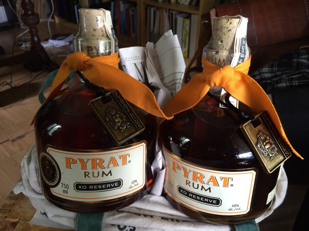 J’ai eu le plaisir de déguster un verre du rhum Pyrat XO réserve et je dois avouer que c’est le meilleur rhum que j’ai goûté ! Avec un peu de glace et même là, je ne sais pas si c’est pertinent. Je me suis procuré un petit inventaire, on me dit qu’il n’est pas toujours disponible…