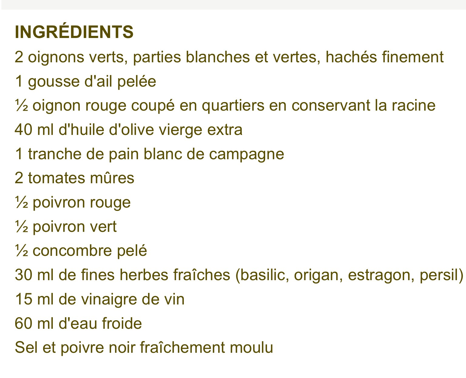 Notre jardin nous offre de belles récoltes et il faut passer des légumes! En plus des traditionnelles sauces à spag, voici une Recette intéressante pour une gaspacho aux légumes grillés au BBQ.